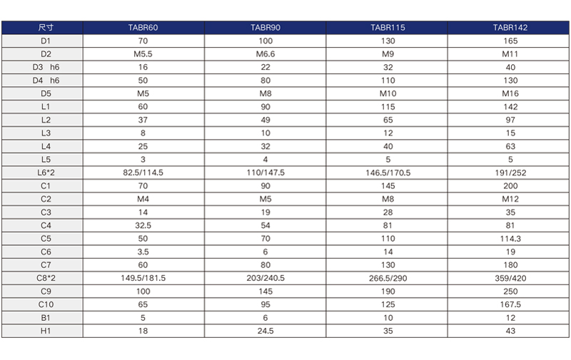 TABR系列性能參數表/TABR Series Performance Table | |||||||