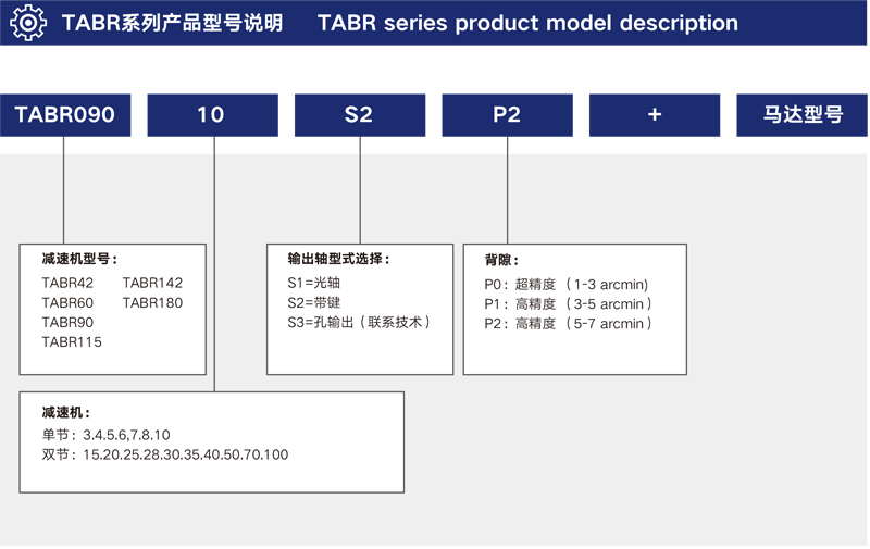 規格 Specification | 單位 Unit | 節數 Stage | 減速比 Ratio | TABR60 | TABR90 | TABR115 | TABR142 |