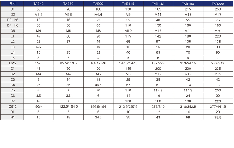 TAB系列性能參數(shù)表 / TAB Series Performance Table | ||||||||||