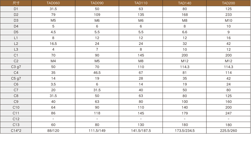 TAD列性能參數表 / TAD Series Performance Table | ||||||||