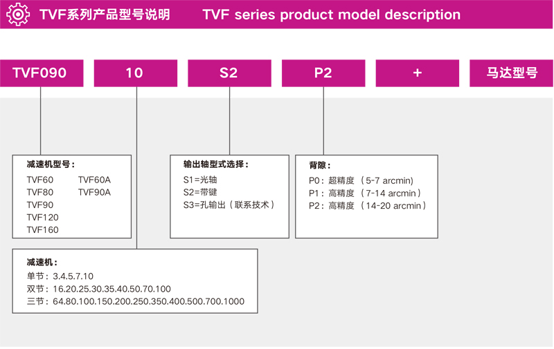 規格 Specification | 單位 Unit | 節數Stage | 減速比Ratio | TVF60 | TVF80 | TVF90 | TVF120 | TVF160 |
