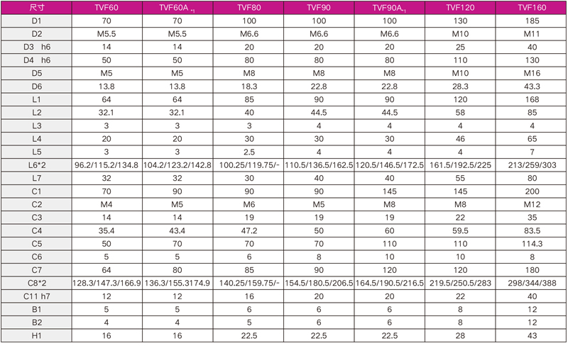 TVF系列性能參數表 / TVF Series Performance Table | ||||||||