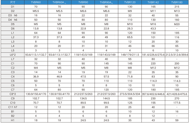 TVBR系列性能參數表 / TVBR Series Performance Table | ||||||||