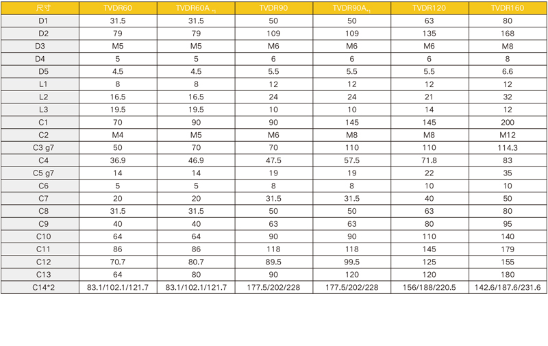 TVDR列性能參數表 / TVDR Series Performance Table | |||||||