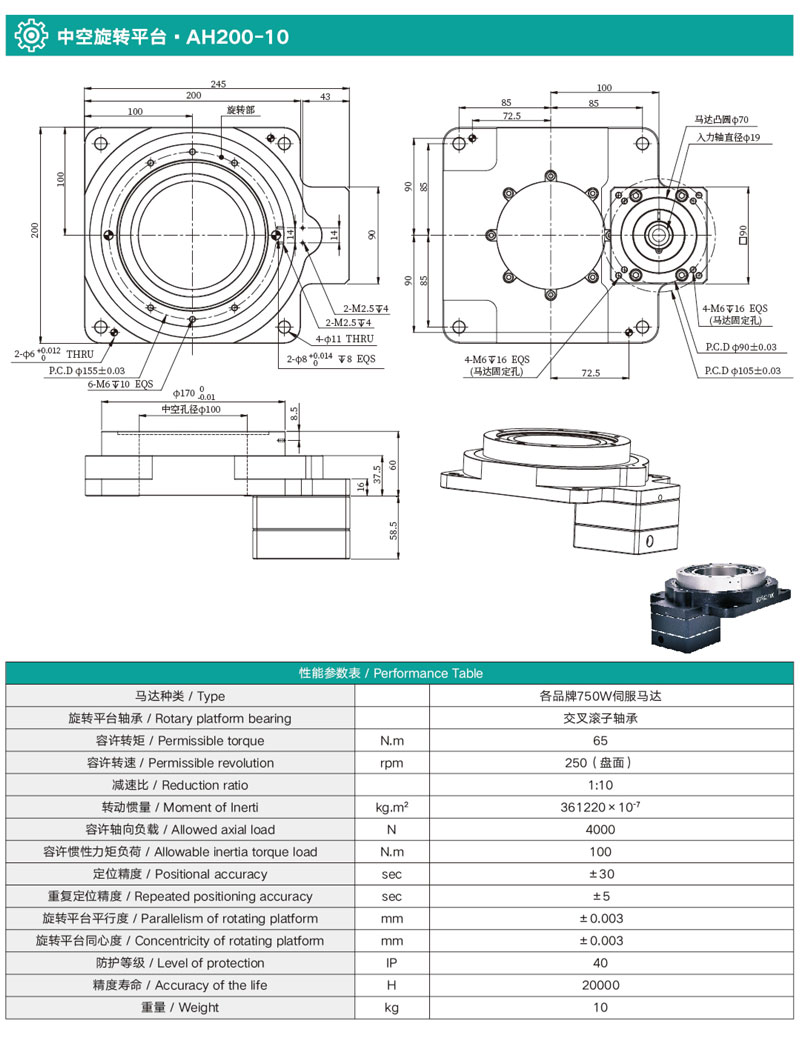 無齒隙,定位精度≤15sec,重復定位精度可達±5sec